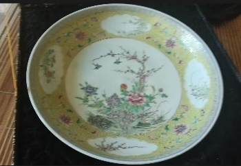 粉彩开光花鸟纹盘
