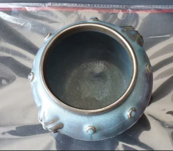 元代钧窑加红铺手乳钉罐