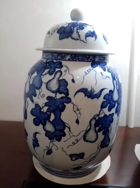 青花福禄纹盖罐一对