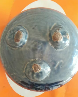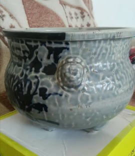 元代蓝黑釉菊花纹三足双耳炉